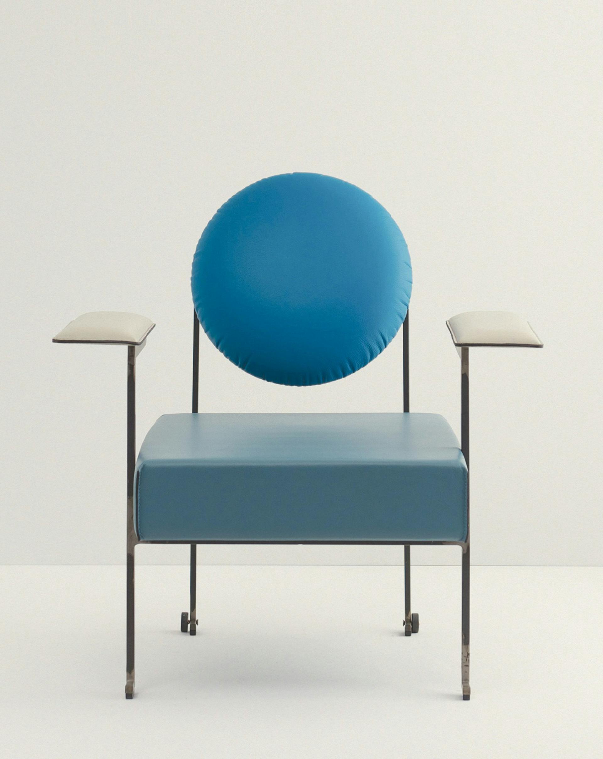 An ample cushion gives comfortable support to the back. The welded metal structure creates an M shape in the back on which the cushion height can be adjusted.